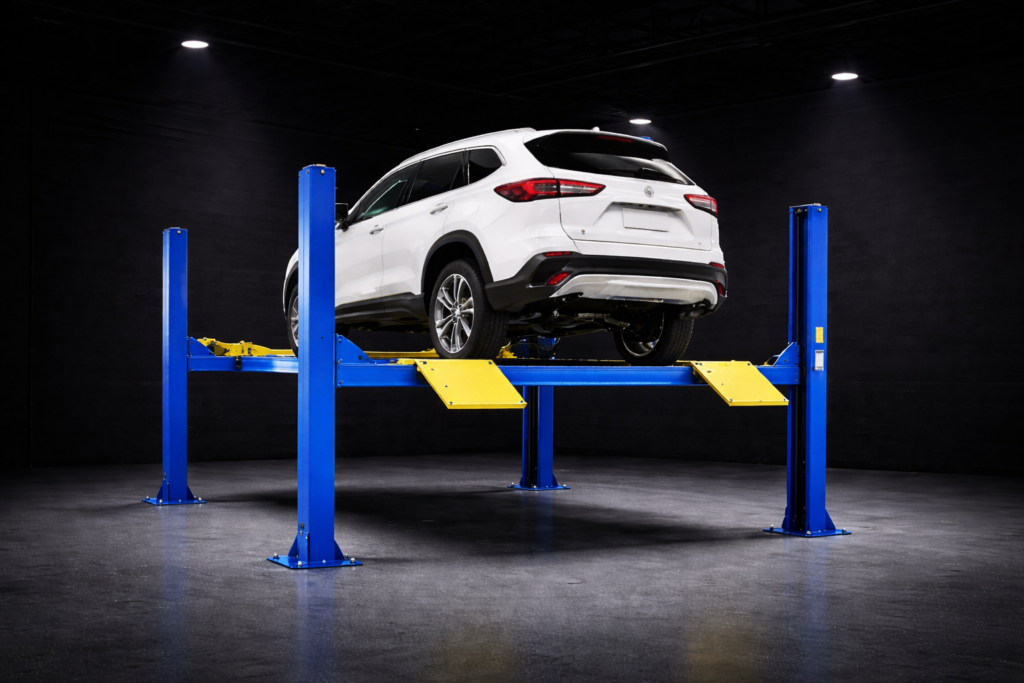 This 4-post lift comes with everything you might need. It will lift a car into the air. Maybe even a truck. They’re pretty cool and they come in a couple different colors. Check out the totally made up specs below.